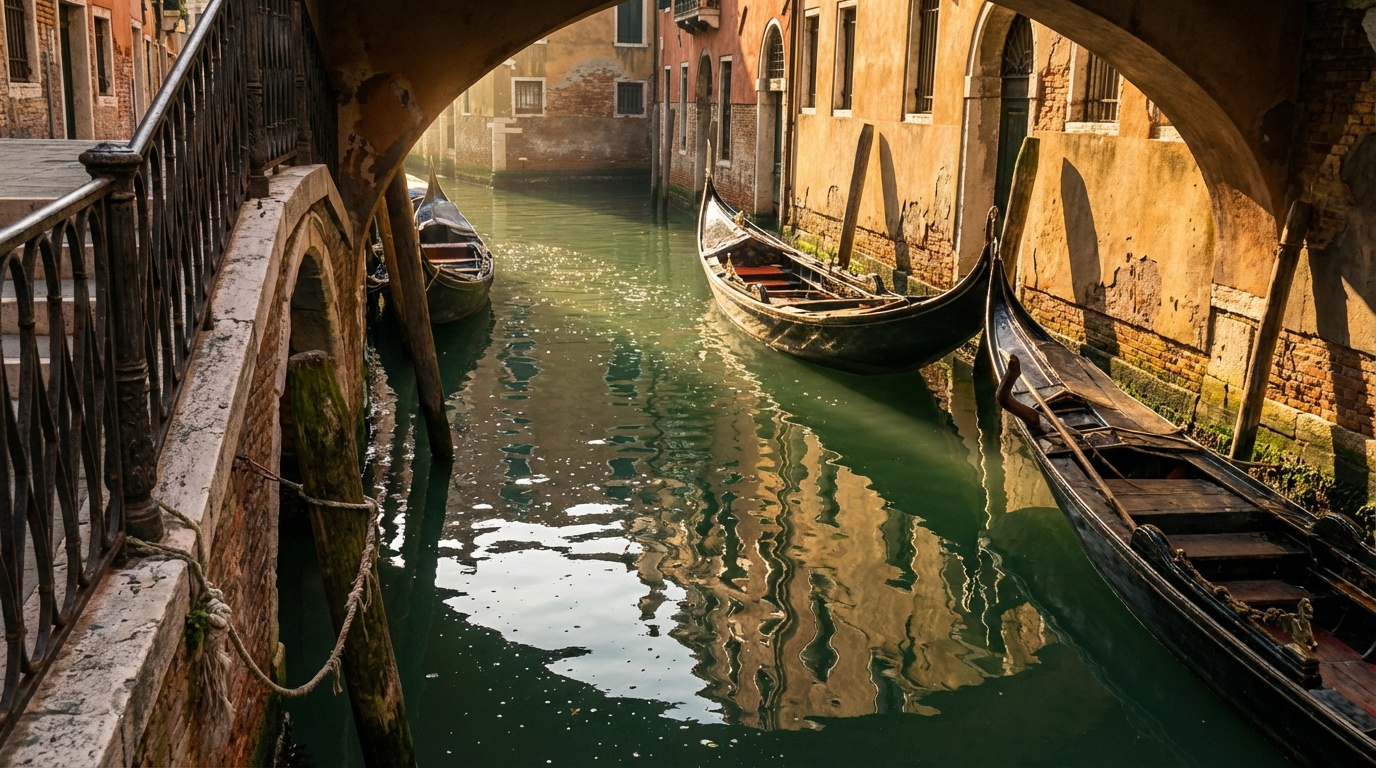 작은 운하를 따라 난 좁은 골목에 발을 들였을 때, 갓 빠져나온 밤의 서늘함이 아직 머물러 있었다. 묵직한 물비린내, 젖은 돌담에서 올라오는 이끼 낀 흙냄새가 코끝을 스쳤다. 수면은 거울처럼 고요했고, 오래된 건물들이 창백한 아침 햇살을 받아 희미하게 빛났다. 멀리서 들려오는 성당의 종소리가 물결을 타고 느리게 번져왔고, 이따금 노 젖는 소리가 정적을 가르고 지나갔다. 마치 세상의 모든 소음이 물 아래로 가라앉아버린 듯, 이 도시의 모든 움직임은 느리고 조심스러웠다.